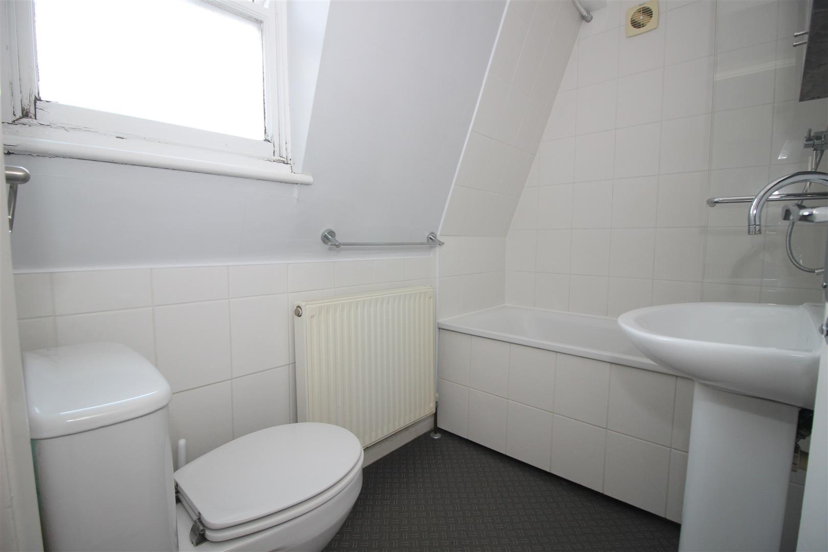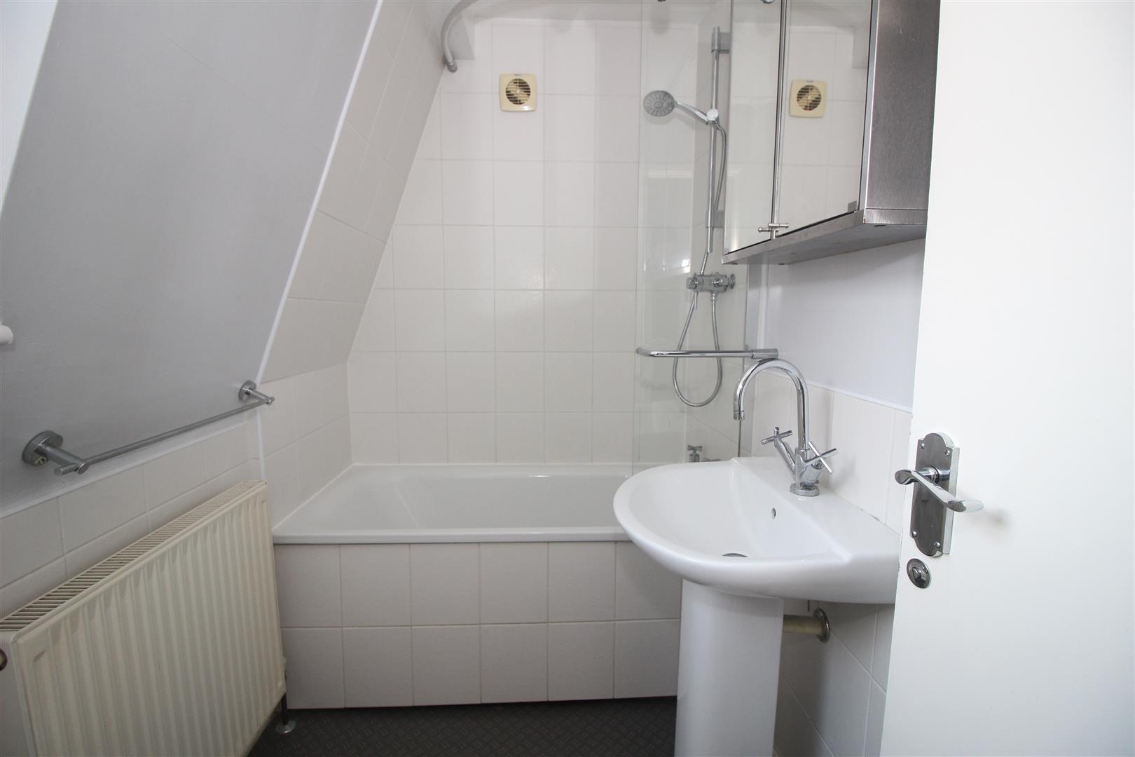 Modern shower room located with window to rear.