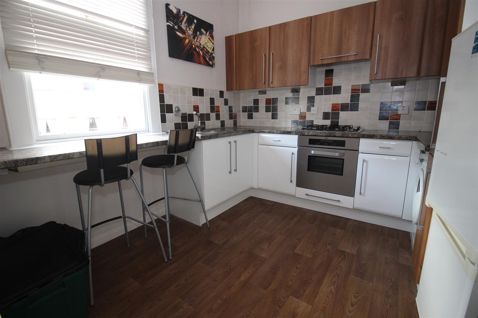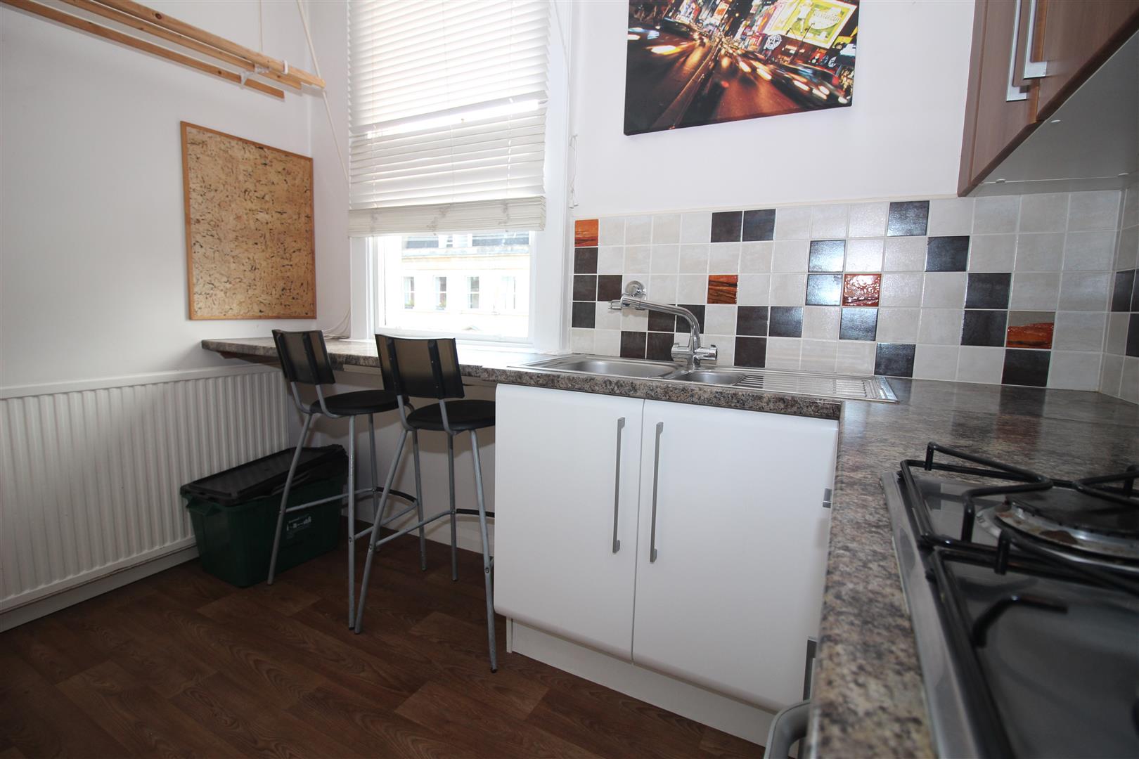 A bright specious area with a good range of wall and base units and breakfast bar overlooking Edward Street.